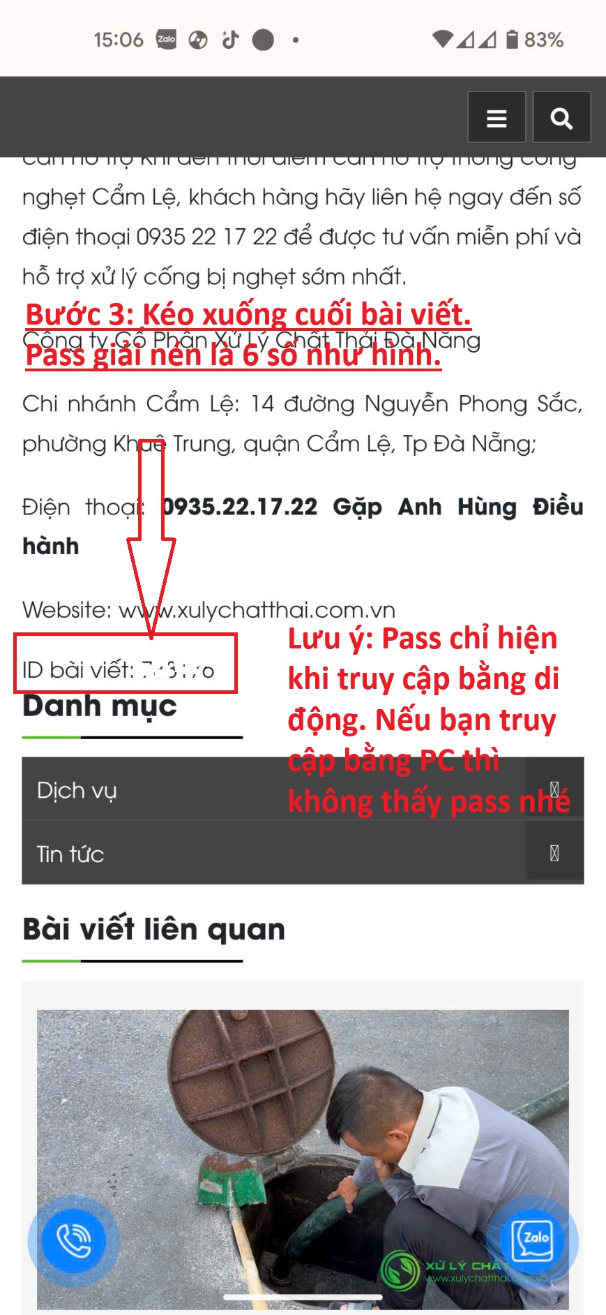 Keó xuống cuối bài viết. Pass giải nén là dãy số có 6 chữ số trong ô màu đỏ. Đó chính là ID của bài viết