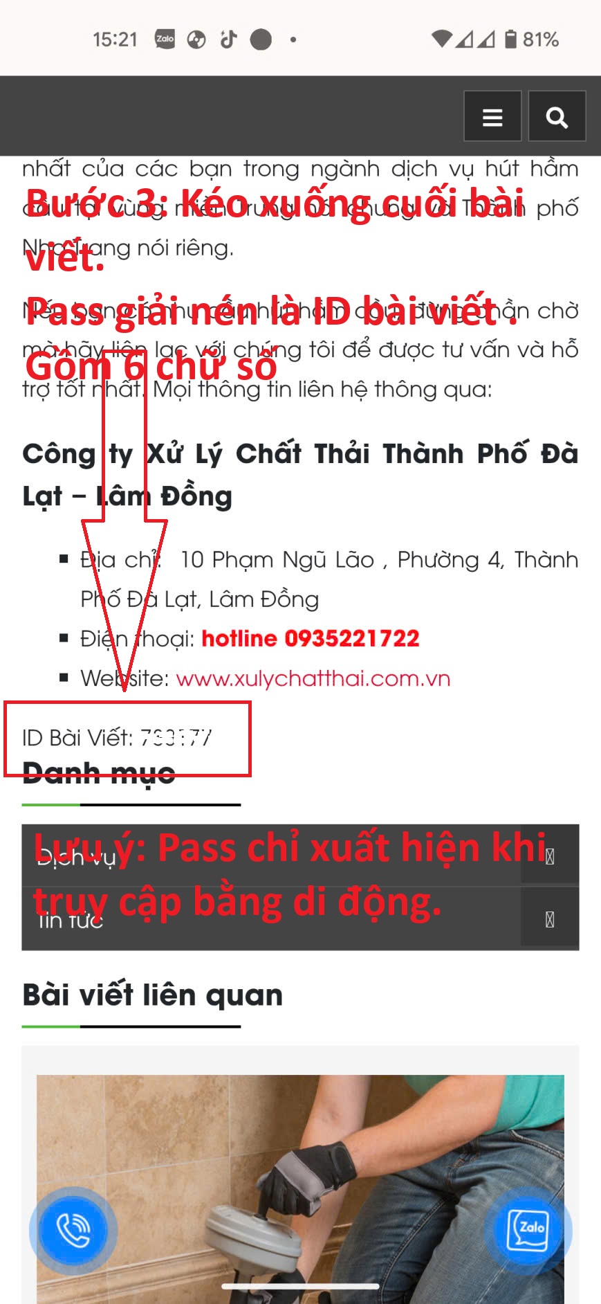 (Vì Pass chỉ hiện khi truy cập bằng di động, nếu các bạn truy cập bằng PC thì pass sẽ không xuất hiện ạ)