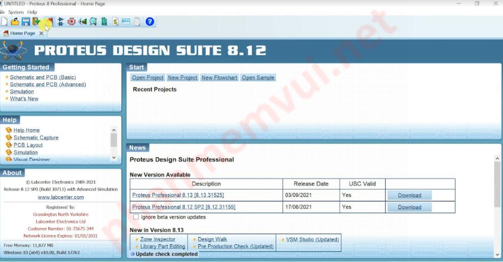 Giờ bạn có thể mở phần mềm Proteus lên và sử dụng. Như bạn đã thấy, phần mềm đã được kích hoạt sẵn.